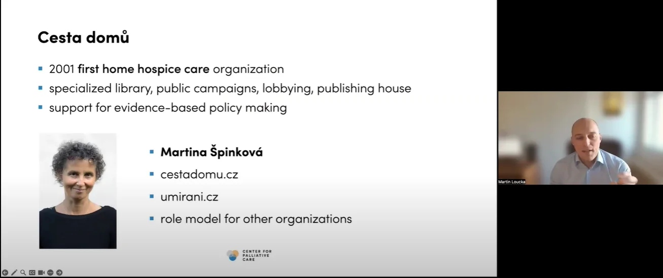- You need to build beacon organisations—real-life examples demonstrating how it works. You need excellent care providers who can showcase what palliative care looks like when it’s done right. These beacon organisations must also possess educational capacity, as one challenge we now face in the Czech Republic is that the demand for palliative care education is outpacing our ability to train new people. Therefore, consider this from the beginning. If you’re creating a model hospice or hospital service, reflect on how you will share what you’ve learned and train others.